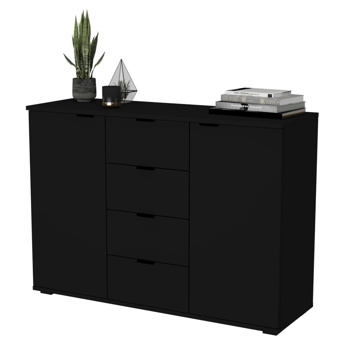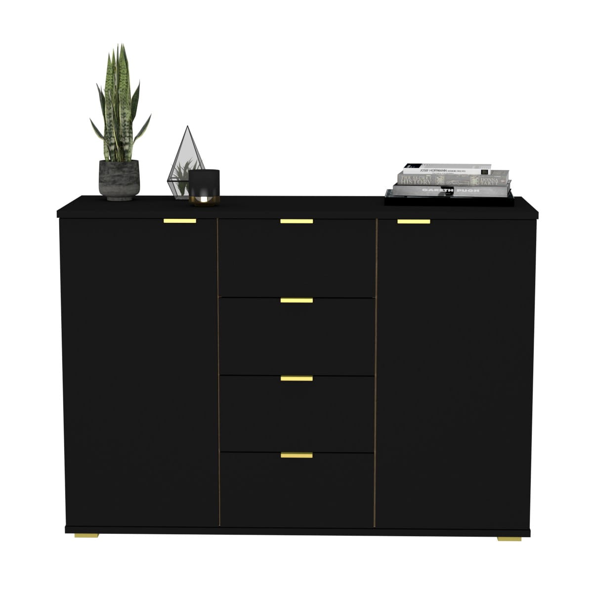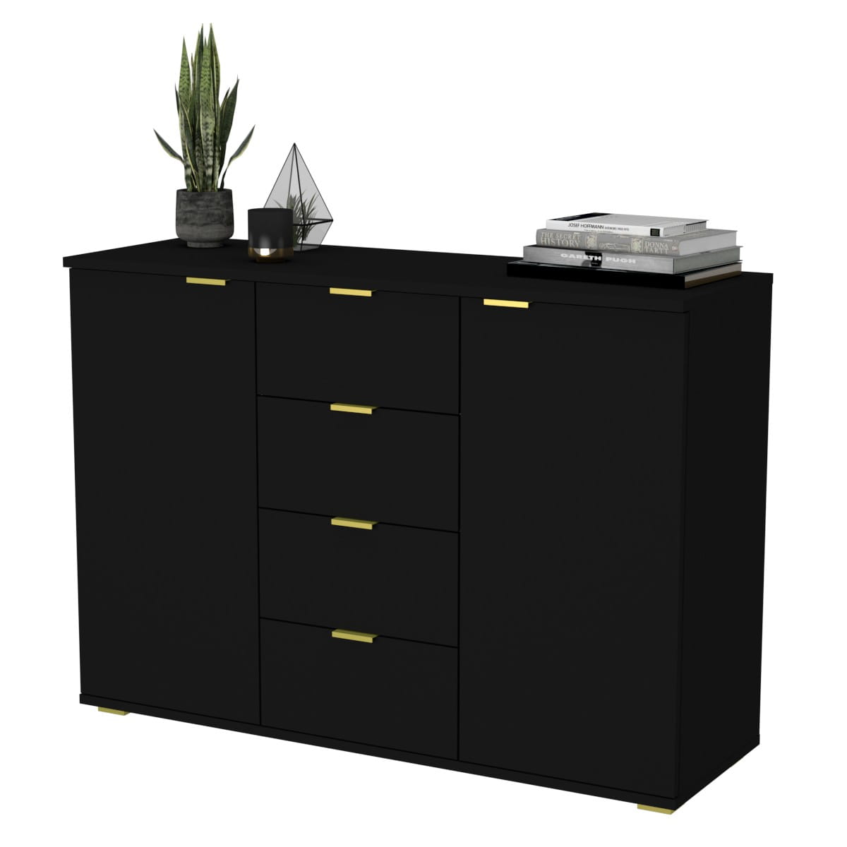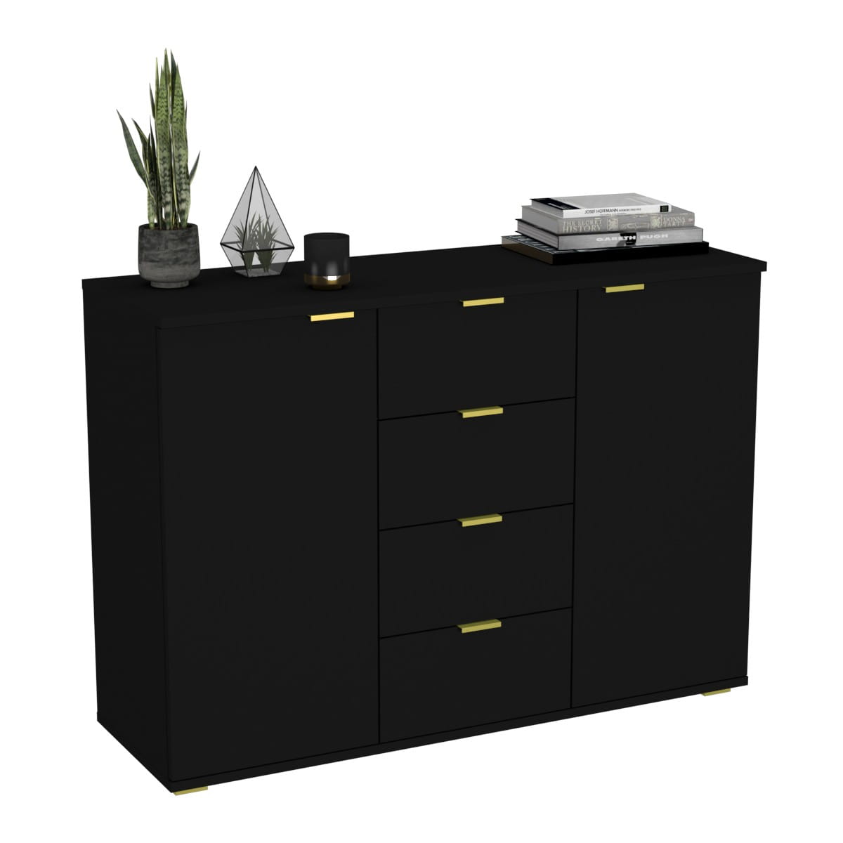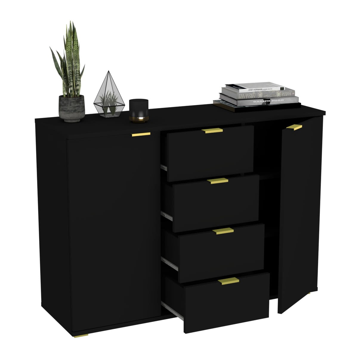 Jeśli poszukujesz komody, która sprosta zarówno praktycznym, jak i estetycznym wymaganiom Twojego wnętrza, nasza komoda z czterema szufladami i dwiema otwieranymi szafkami to idealny wybór. Ten mebel doskonale łączy funkcjonalność z atrakcyjnym designem, dodając uroku każdemu pomieszczeniu.