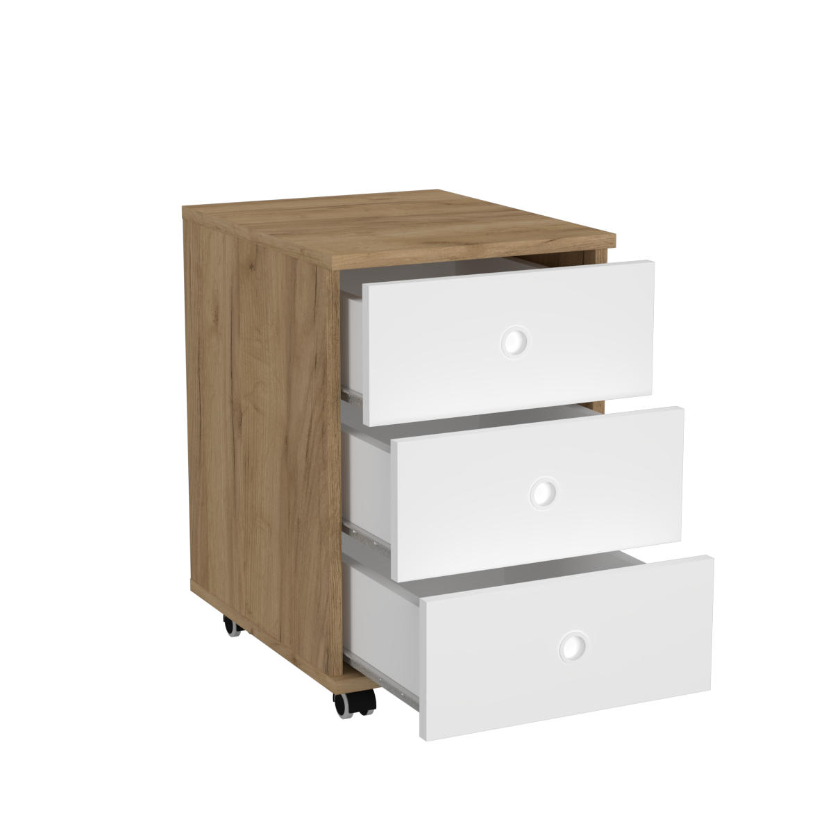 Kontenerek na kółkach z szufladami | N^1 - dębowo-biały